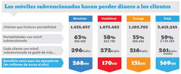 En el gráfico anterior se puede apreciar los beneficios que obtienen las diferentes operadoras que ofrecen smartphones gratis si te adhieres a alguno de los planes o contratos lanzados.
