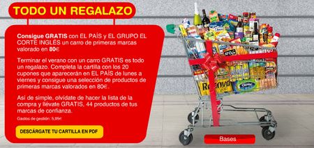 Sólo hay que pagar 5,95 euros por los gastos de gestión, en la página oficial pueden apreciar los productos que formar parte de este carro de la compra y además descargar la cartilla de la promoción.